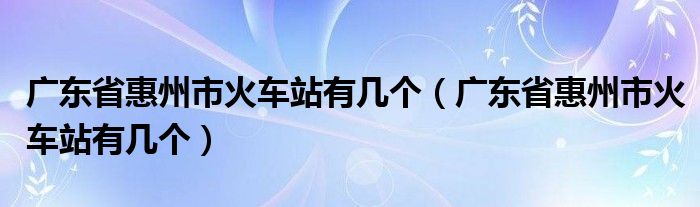 大家好,小生来为大家讲解下。广东省惠州市火车站有几个,广东省惠州市火车站有几个很多人还不知道,现在让我们一起来看看吧!