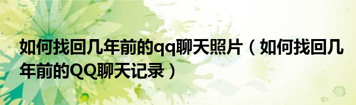 大家好,小生来为大家讲解下。如何找回几年前的qq聊天照片,如何找回几年前的QQ聊天记录很多人还不知道,现在让我们一起来看看吧!