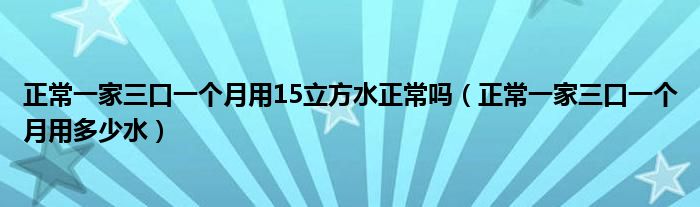 大家好,小生来为大家讲解下。正常一家三口一个月用15立方水正常吗,正常一家三口一个月用多少水很多人还不知道,现在让我们一起来看看吧!