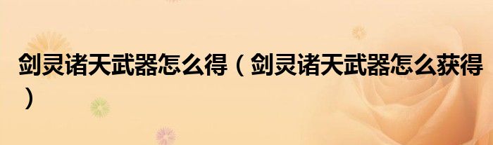 大家好,小生来为大家讲解下。剑灵诸天武器怎么得,剑灵诸天武器怎么获得很多人还不知道,现在让我们一起来看看吧!