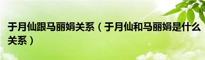 大家好,小生来为大家讲解下。于月仙跟马丽娟关系,于月仙和马丽娟是什么关系很多人还不知道,现在让我们一起来看看吧!