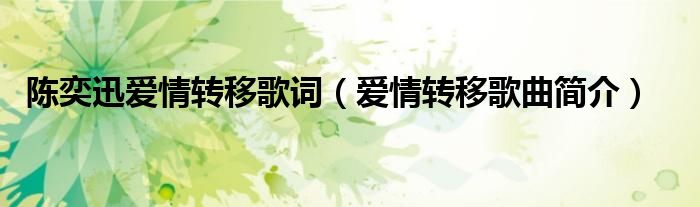 大家好,伊人来为大家解答以上问题。陈奕迅爱情转移歌词,爱情转移歌曲简介很多人还不知道,现在让我们一起来看看吧!
