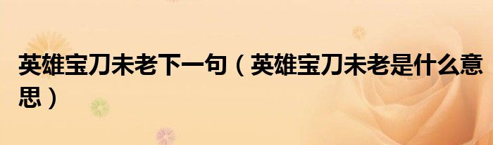 大家好,伊人来为大家解答以上问题。英雄宝刀未老下一句,英雄宝刀未老是什么意思很多人还不知道,现在让我们一起来看看吧!