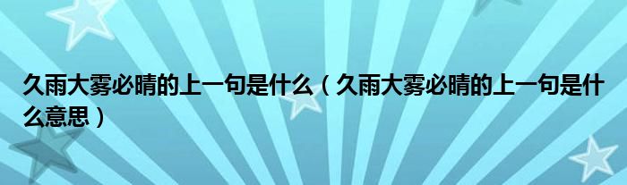 大家好,小生来为大家讲解下。久雨大雾必晴的上一句是什么,久雨大雾必晴的上一句是什么意思很多人还不知道,现在让我们一起来看看吧!