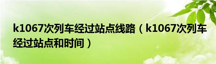 大家好,小生来为大家讲解下。k1067次列车经过站点线路,k1067次列车经过站点和时间很多人还不知道,现在让我们一起来看看吧!
