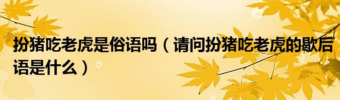 大家好,小生来为大家讲解下。扮猪吃老虎是俗语吗,请问扮猪吃老虎的歇后语是什么很多人还不知道,现在让我们一起来看看吧!