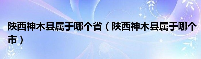 大家好,小生来为大家讲解下。陕西神木县属于哪个省,陕西神木县属于哪个市很多人还不知道,现在让我们一起来看看吧!