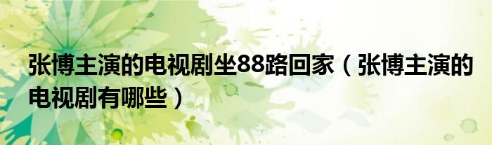 大家好,小生来为大家讲解下。张博主演的电视剧坐88路回家,张博主演的电视剧有哪些很多人还不知道,现在让我们一起来看看吧!