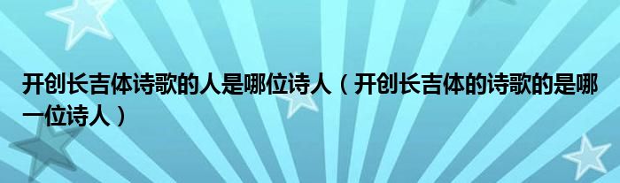 大家好,小生来为大家讲解下。开创长吉体诗歌的人是哪位诗人,开创长吉体的诗歌的是哪一位诗人很多人还不知道,现在让我们一起来看看吧!