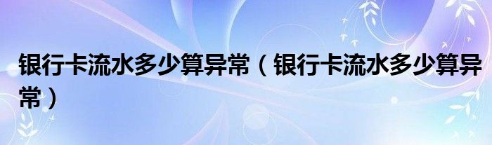 大家好,小生来为大家讲解下。银行卡流水多少算异常,银行卡流水多少算异常很多人还不知道,现在让我们一起来看看吧!
