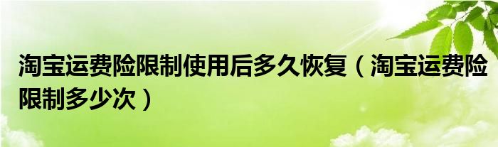 大家好,小生来为大家讲解下。淘宝运费险限制使用后多久恢复,淘宝运费险限制多少次很多人还不知道,现在让我们一起来看看吧!