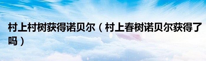大家好,小生来为大家讲解下。村上村树获得诺贝尔,村上春树诺贝尔获得了吗很多人还不知道,现在让我们一起来看看吧!