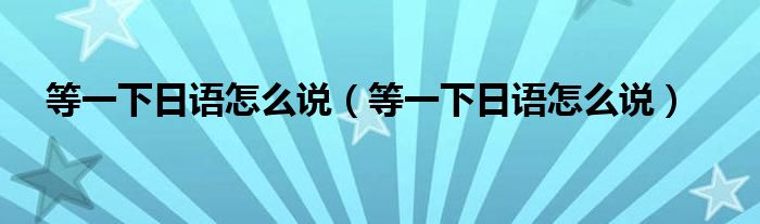 大家好,小生来为大家讲解下。等一下日语怎么说,等一下日语怎么说很多人还不知道,现在让我们一起来看看吧!