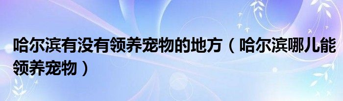 大家好,小生来为大家讲解下。哈尔滨有没有领养宠物的地方,哈尔滨哪儿能领养宠物很多人还不知道,现在让我们一起来看看吧!