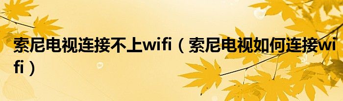 大家好,小生来为大家讲解下。索尼电视连接不上wifi,索尼电视如何连接wifi很多人还不知道,现在让我们一起来看看吧!