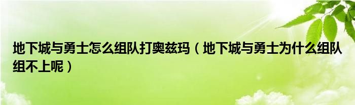 大家好,小生来为大家讲解下。地下城与勇士怎么组队打奥兹玛,地下城与勇士为什么组队组不上呢很多人还不知道,现在让我们一起来看看吧!