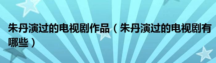 大家好,小生来为大家讲解下。朱丹演过的电视剧作品,朱丹演过的电视剧有哪些很多人还不知道,现在让我们一起来看看吧!