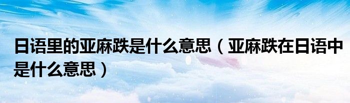 大家好,小生来为大家讲解下。日语里的亚麻跌是什么意思,亚麻跌在日语中是什么意思很多人还不知道,现在让我们一起来看看吧!