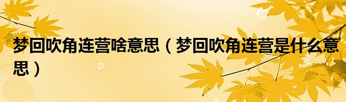 大家好,小生来为大家讲解下。梦回吹角连营啥意思,梦回吹角连营是什么意思很多人还不知道,现在让我们一起来看看吧!