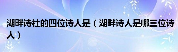 大家好,小生来为大家讲解下。湖畔诗社的四位诗人是,湖畔诗人是哪三位诗人很多人还不知道,现在让我们一起来看看吧!