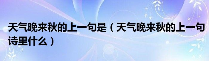 大家好,小生来为大家讲解下。天气晚来秋的上一句是,天气晚来秋的上一句诗里什么很多人还不知道,现在让我们一起来看看吧!