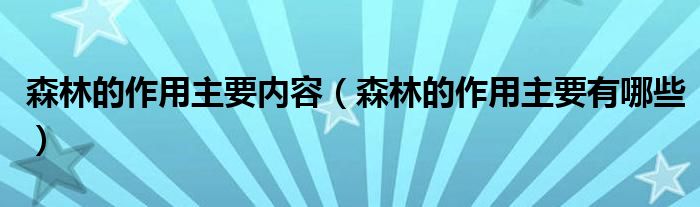 大家好,小生来为大家讲解下。森林的作用主要内容,森林的作用主要有哪些很多人还不知道,现在让我们一起来看看吧!