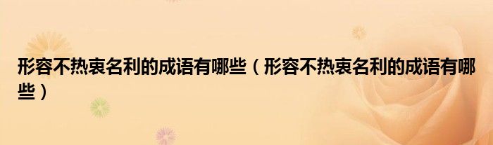 大家好,小生来为大家讲解下。形容不热衷名利的成语有哪些,形容不热衷名利的成语有哪些很多人还不知道,现在让我们一起来看看吧!