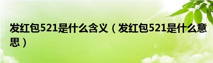 大家好,小生来为大家讲解下。发红包521是什么含义,发红包521是什么意思很多人还不知道,现在让我们一起来看看吧!