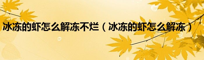 大家好,小生来为大家讲解下。冰冻的虾怎么解冻不烂,冰冻的虾怎么解冻很多人还不知道,现在让我们一起来看看吧!
