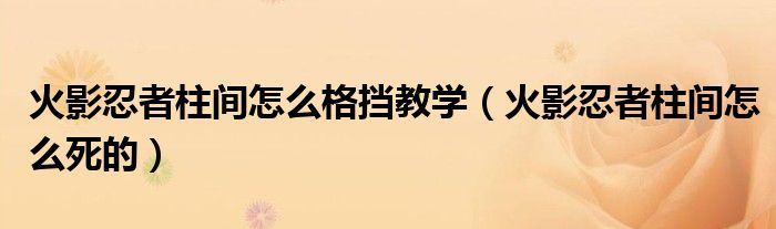 大家好,小生来为大家讲解下。火影忍者柱间怎么格挡教学,火影忍者柱间怎么死的很多人还不知道,现在让我们一起来看看吧!