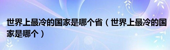 大家好,小生来为大家讲解下。世界上最冷的国家是哪个省,世界上最冷的国家是哪个很多人还不知道,现在让我们一起来看看吧!