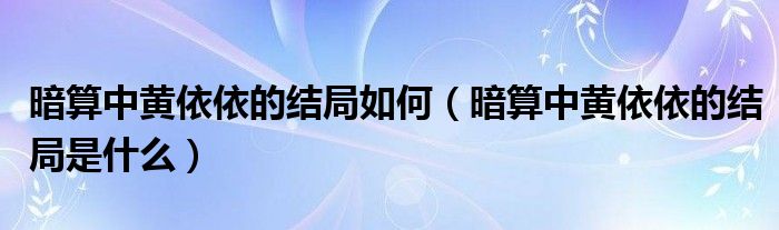 大家好,小生来为大家讲解下。暗算中黄依依的结局如何,暗算中黄依依的结局是什么很多人还不知道,现在让我们一起来看看吧!
