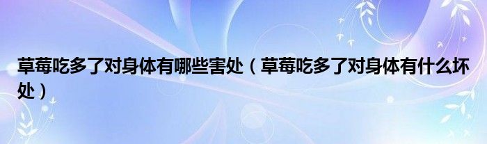 大家好,小生来为大家讲解下。草莓吃多了对身体有哪些害处,草莓吃多了对身体有什么坏处很多人还不知道,现在让我们一起来看看吧!