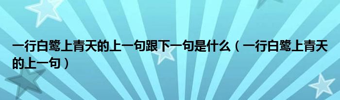 大家好,小生来为大家讲解下。一行白鹭上青天的上一句跟下一句是什么,一行白鹭上青天的上一句很多人还不知道,现在让我们一起来看看吧!