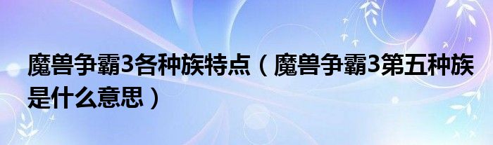 大家好,小生来为大家讲解下。魔兽争霸3各种族特点,魔兽争霸3第五种族是什么意思很多人还不知道,现在让我们一起来看看吧!