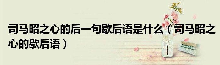 大家好,小生来为大家讲解下。司马昭之心的后一句歇后语是什么,司马昭之心的歇后语很多人还不知道,现在让我们一起来看看吧!