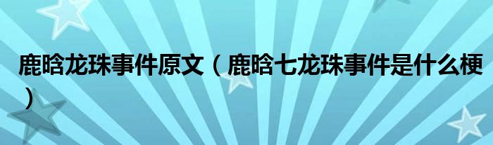 大家好,小生来为大家讲解下。鹿晗龙珠事件原文,鹿晗七龙珠事件是什么梗很多人还不知道,现在让我们一起来看看吧!