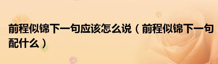 大家好,小生来为大家讲解下。前程似锦下一句应该怎么说,前程似锦下一句配什么很多人还不知道,现在让我们一起来看看吧!