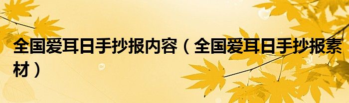 大家好,伊人来为大家解答以上问题。全国爱耳日手抄报内容,全国爱耳日手抄报素材很多人还不知道,现在让我们一起来看看吧!