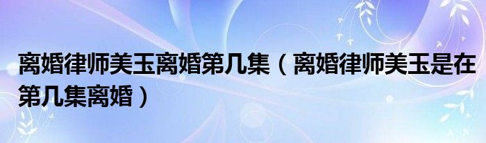 大家好,伊人来为大家解答以上问题。离婚律师美玉离婚第几集,离婚律师美玉是在第几集离婚很多人还不知道,现在让我们一起来看看吧!