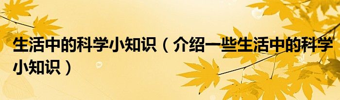 大家好,伊人来为大家解答以上问题。生活中的科学小知识,介绍一些生活中的科学小知识很多人还不知道,现在让我们一起来看看吧!