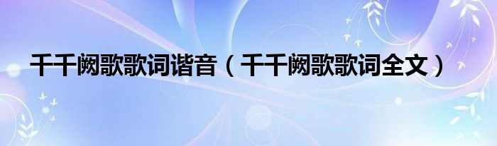 大家好,伊人来为大家解答以上问题。千千阙歌歌词谐音,千千阙歌歌词全文很多人还不知道,现在让我们一起来看看吧!