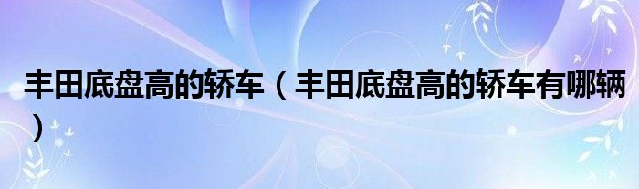 大家好,伊人来为大家解答以上问题。丰田底盘高的轿车,丰田底盘高的轿车有哪辆很多人还不知道,现在让我们一起来看看吧!