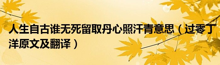 大家好,伊人来为大家解答以上问题。人生自古谁无死留取丹心照汗青意思,过零丁洋原文及翻译很多人还不知道,现在让我们一起来看看吧!