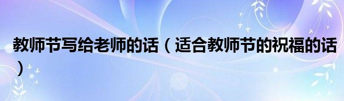 大家好,伊人来为大家解答以上问题。教师节写给老师的话,适合教师节的祝福的话很多人还不知道,现在让我们一起来看看吧!