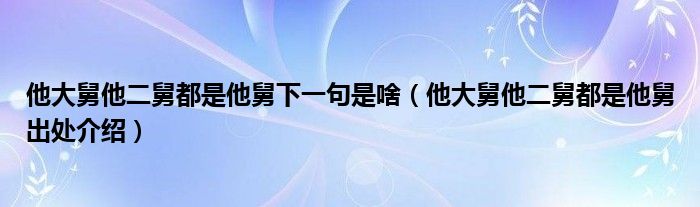 大家好,伊人来为大家解答以上问题。他大舅他二舅都是他舅下一句是啥,他大舅他二舅都是他舅出处介绍很多人还不知道,现在让我们一起来看看吧!