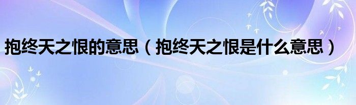 大家好,伊人来为大家解答以上问题。抱终天之恨的意思,抱终天之恨是什么意思很多人还不知道,现在让我们一起来看看吧!