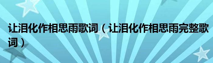 大家好,伊人来为大家解答以上问题。让泪化作相思雨歌词,让泪化作相思雨完整歌词很多人还不知道,现在让我们一起来看看吧!