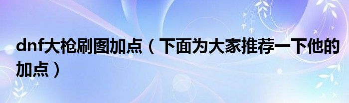 大家好,伊人来为大家解答以上问题。dnf大枪刷图加点,下面为大家推荐一下他的加点很多人还不知道,现在让我们一起来看看吧!