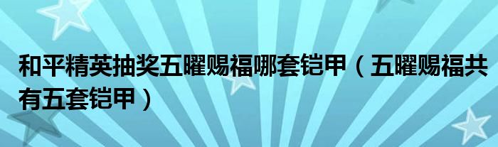大家好,伊人来为大家解答以上问题。和平精英抽奖五曜赐福哪套铠甲,五曜赐福共有五套铠甲很多人还不知道,现在让我们一起来看看吧!
